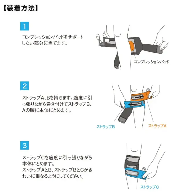 - 3つのストラップが、特徴的なふくらはぎの形状にフィット。動きの激しいスポーツでもずれ落ちを抑制。