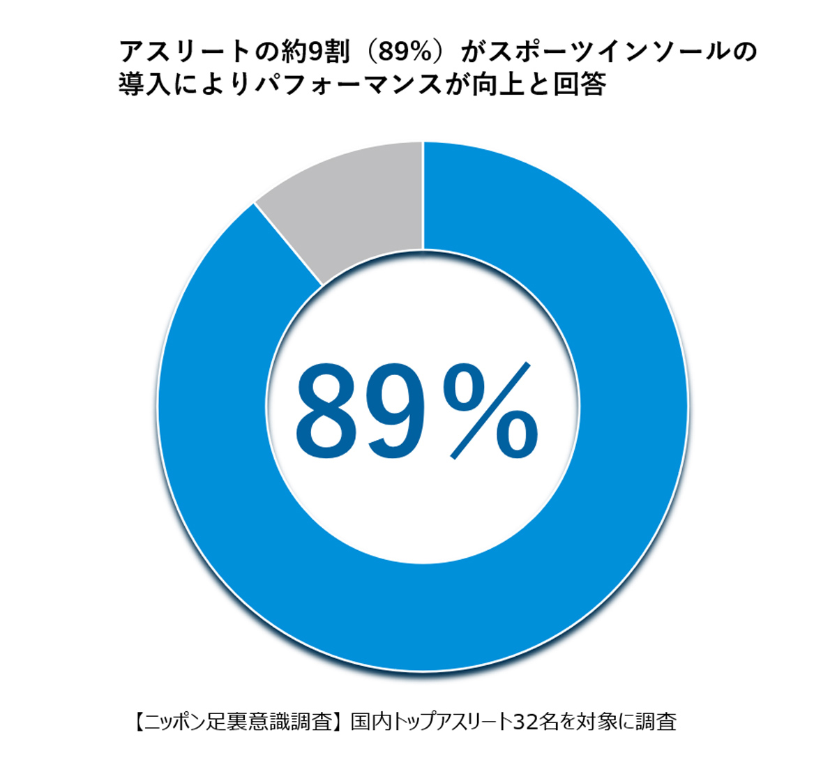 ザムストが国内のトップアスリート32名を対象に行った調査によると、アスリートの約9割(87.5%)が、スポーツインソールなどの機能性インソールに入れ替えて競技を実施していることが分かりました。さらに、スポーツインソールを利用しているアスリートの約9割(89.3%)が「スポーツインソールを導入したことでパフォーマンスが向上した」と実感していることが明らかになりました。