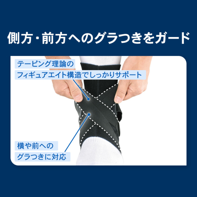 小さな関節ながら、全身の体重を受け止めて動きを支えるのが足首です。歩く・走る・跳ぶといった動作の起点となる一方で、急な方向転換や着地の衝撃によって負担が集中しやすく、ケガが発生しやすい部位でもあります。特に多いのが「内反捻挫(ネンザ)」と呼ばれる足首の内側へのひねりで、足首のネンザ全体の約8~9割を占めるといわれています。こうしたリスクから足首を守るには、安定性と動きやすさを両立したサポーターの着用が効果的。競技中はもちろん、トレーニングや日常の動作でも足首を適切に支えることが、ケガの予防と再発防止につながります。