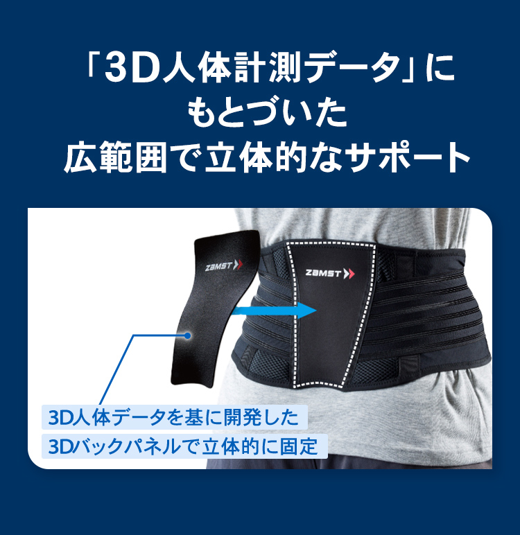 「ZW-5」の快適な装着感を受け継ぎつつ、2枚構造の補助ベルトによって腰部をしっかりホールド。さらに背面のサポート範囲を広げることで、腰全体の安定性を一段と高めています。