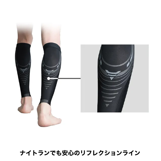 ふくらはぎ全体を中心方向に圧迫し、筋肉の無駄な振動を抑えることでスタミナのロスを防ぎ、パフォーマンスを維持します。足首からふくらはぎにかけて圧力を段階的に弱める段階着圧設計で、疲れやすい部位を効率よくサポート。