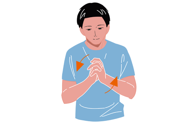 手〜ヒジ〜肩まで、腕全体が伸びているのを感じながら、そのまま10〜20秒程度静止してください。 -
