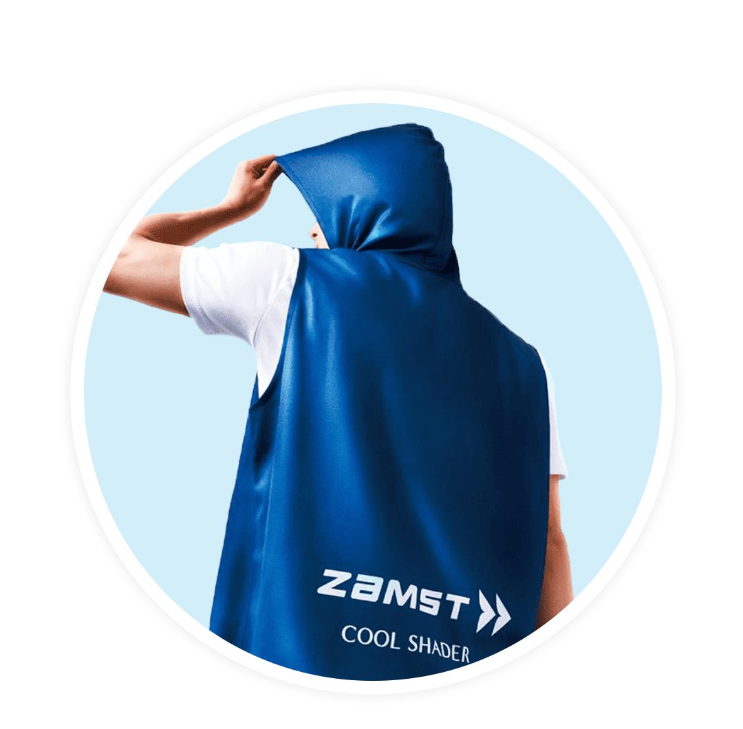 肌温度より-15℃の製品がカラダを冷却します。日影がない場所でも、直射日光を遮り、UV97%カットで紫外線対策もばっちり。